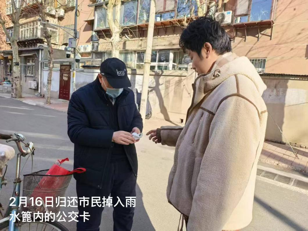 新春坚守显担当。大年初一上午9时许,市民王先生在天桥区历黄路北园大街公交站牌处不慎将公交乘车卡掉入井篦子内。中片区运维人员李欢笑接到求助后,第一时间赶赴现场,在历黄路138号电线杆下方雨水篦子内精准定位并找回遗失卡片,及时交还失主。这一急民之所急、解民之所忧的暖心举动,不仅彰显了运维人员“保畅为民、服务暖心”的宗旨意识,更让泉城百姓在新春佳节感受到了排水人的责任与温情。